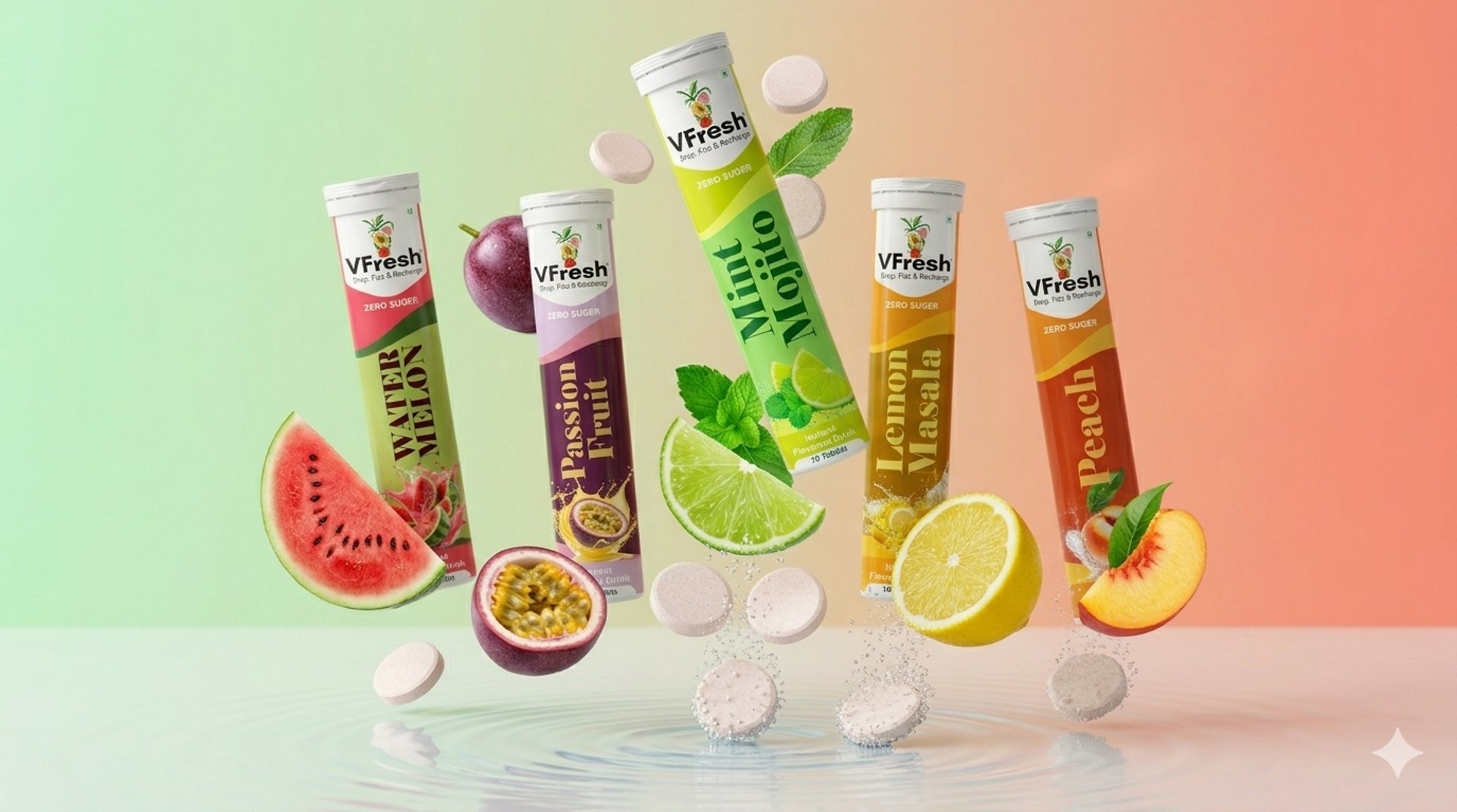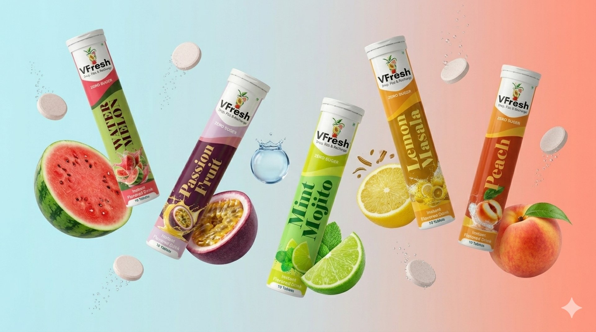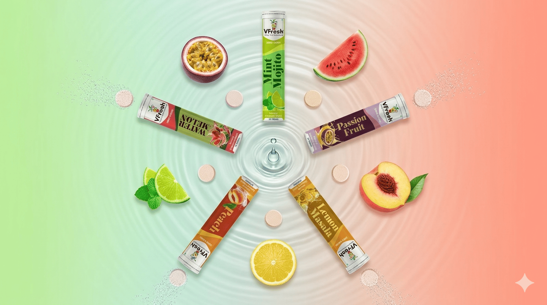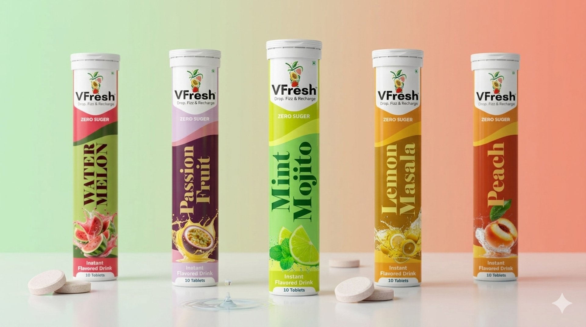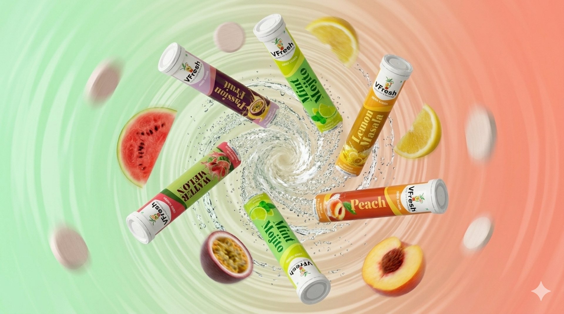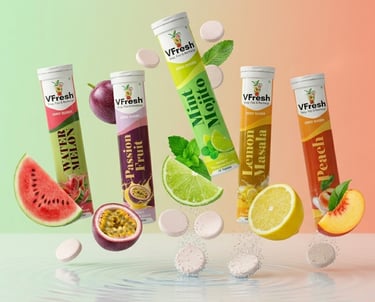 No bottles, no mess, just instant freshness. VFresh Life tablets deliver portable, delicious, and healthy hydration wherever life takes you.